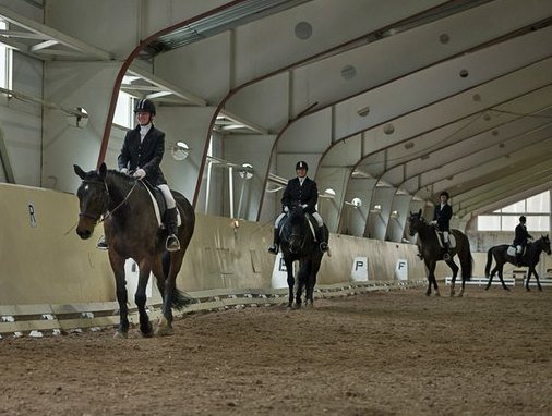 При строительстве конного манежа используются металлоконструкции с антикоррозийным покрытием и высокопрочная тентовая ткань из ПВХ. Такие ее свойства, как негорючесть, химическая неактивность, прочность, светопропускаемость, полностью обеспечивают безопасность людей и животных.
